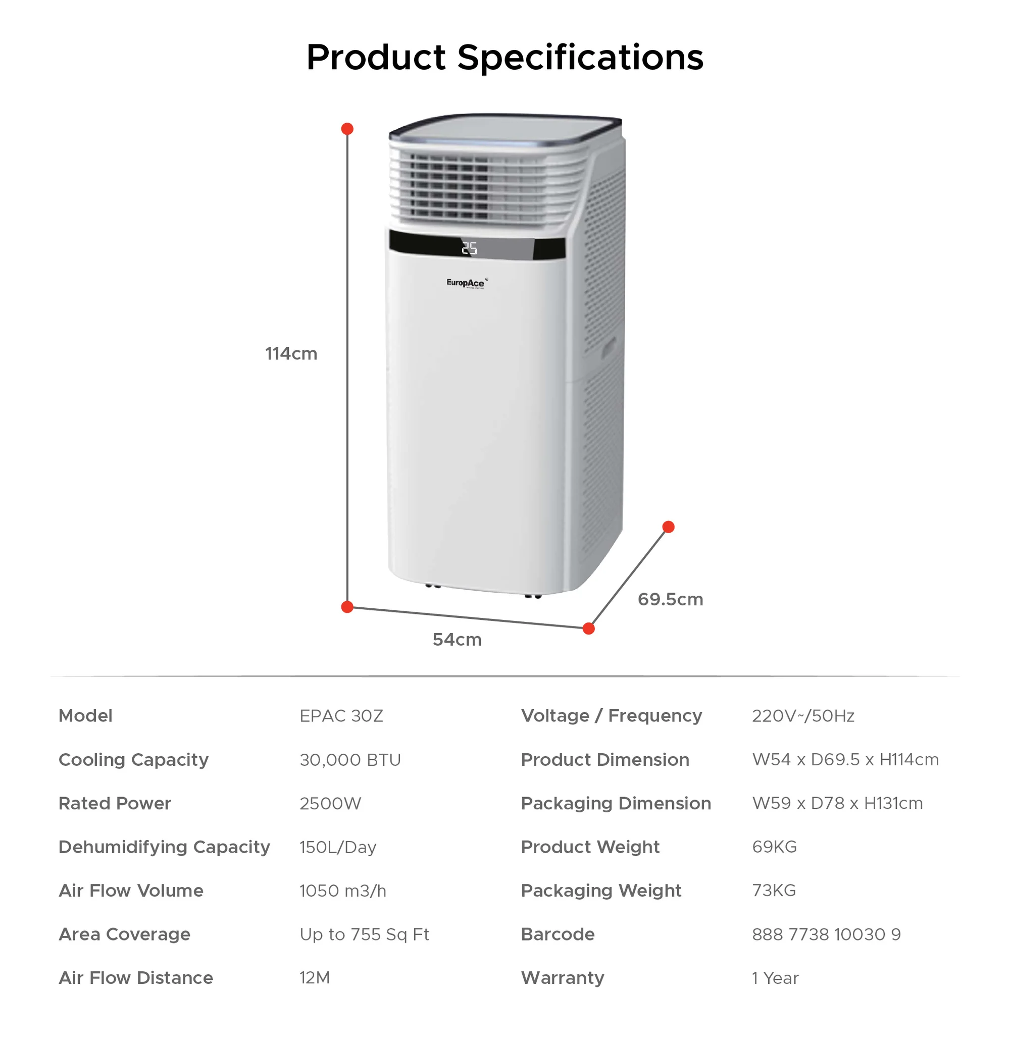 - Ideal for Spacious Areas: Effectively cools large rooms up to 755 sqft