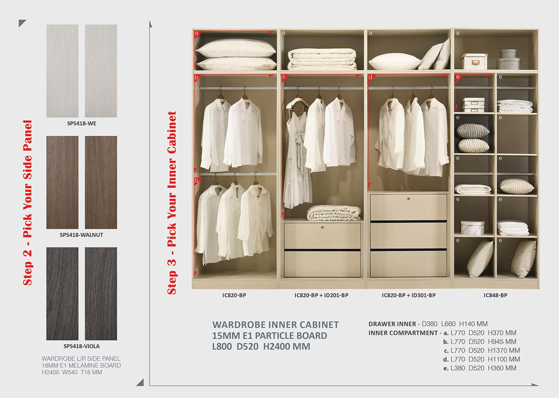 - Wardrobe inner cabinet 15mm E1 particle board :L80cm D52cm H240cm