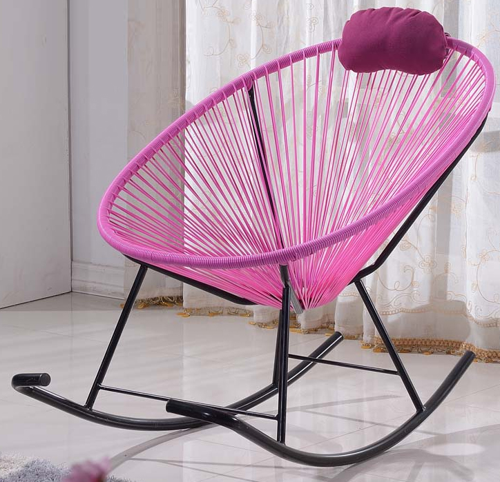 These chic and retro looking rocking chairs are made of thermoplastic polymer threads mounted onto a metal frame. It is suitable for both indoors and outdoors. Ideal as an unique furniture piece to bump up fun and color to your house.