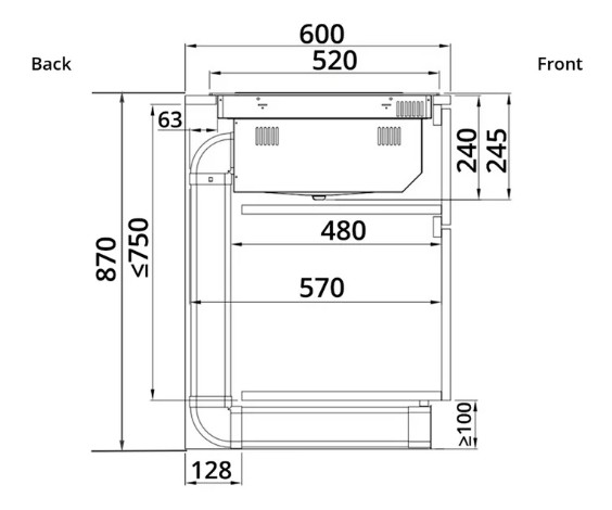 Cut-Out Dimensions (WxD): 560 x 490mm